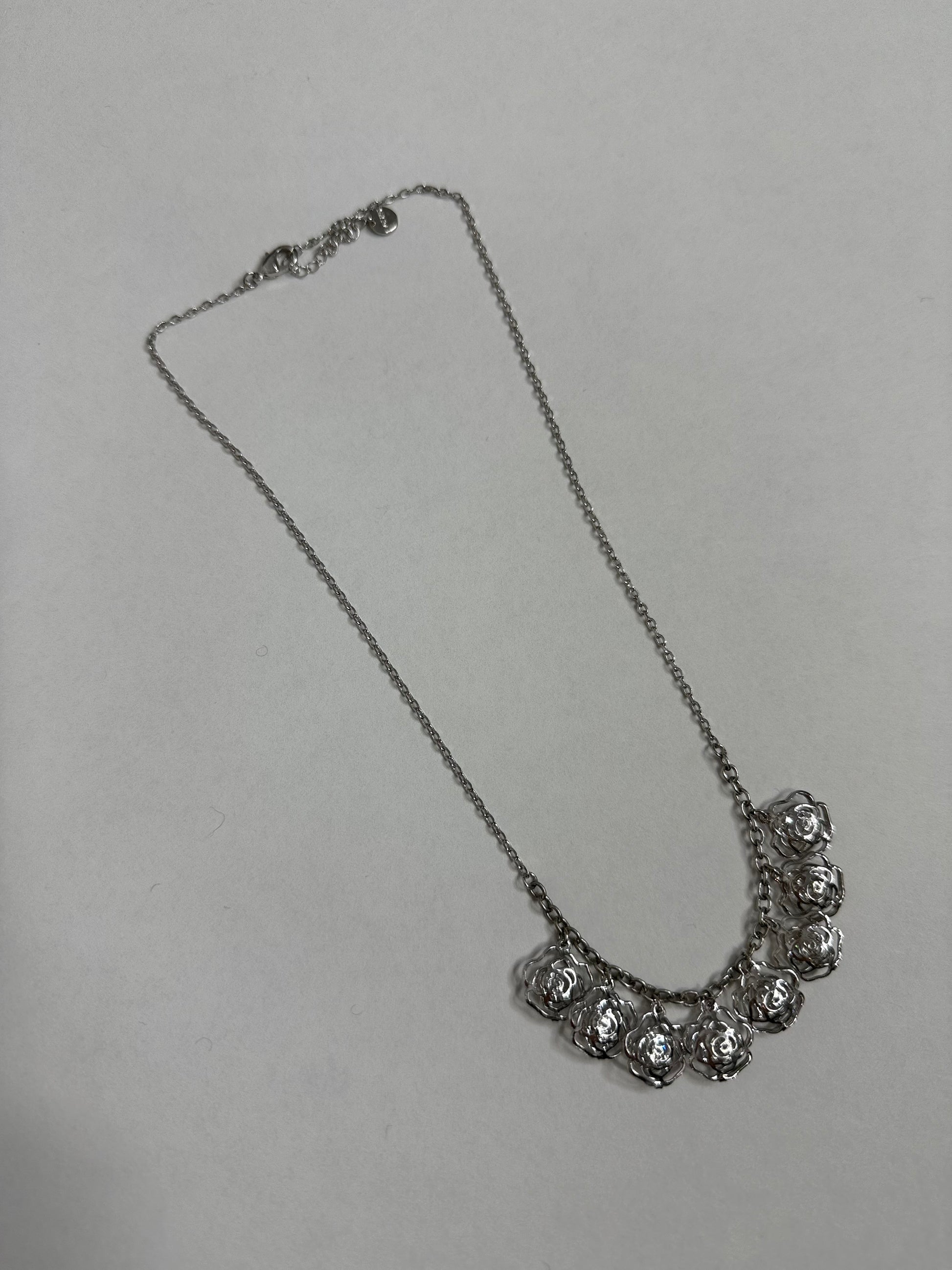Silver rose droplet necklace